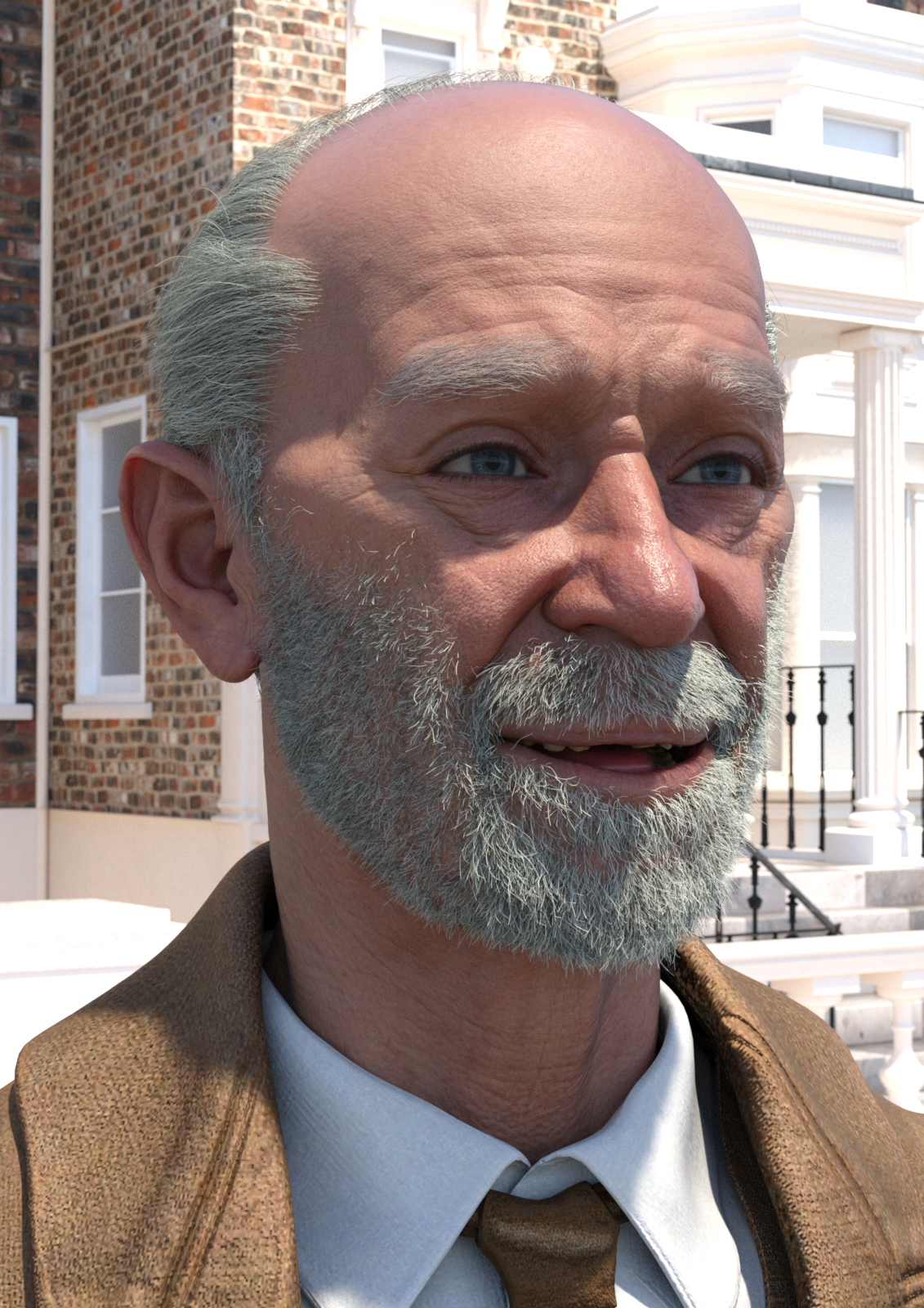 That is the Old George Beard and Old George Facial Hair with the respective OGB Shorter shaping options cranked up to 100%. I too was looking for a patchy look here and was pretty happy with this product. I had thought I'd used a non-stock shader, but in reviewing the scene, it does appear that the texture is the default for the product.