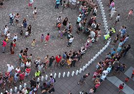 There was a domino thing here today um not sure we were ready for that, the actual falling over things looked like concrete and had no spots on them. eta and they were white and looked like tombstomes sometimes