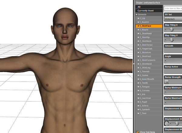 First when I check the Surfaces, I find that the UV Set is Victoria 4. Seems wrong, probably should have been Genesis Male, or Micheal 4. Applying each of them results in the same problem, just different.
