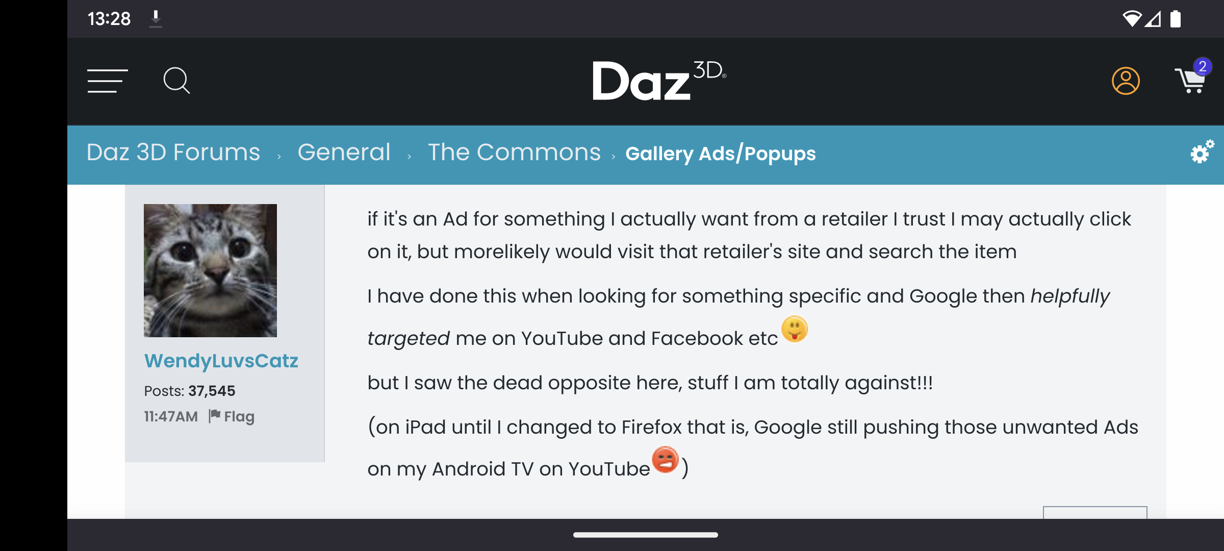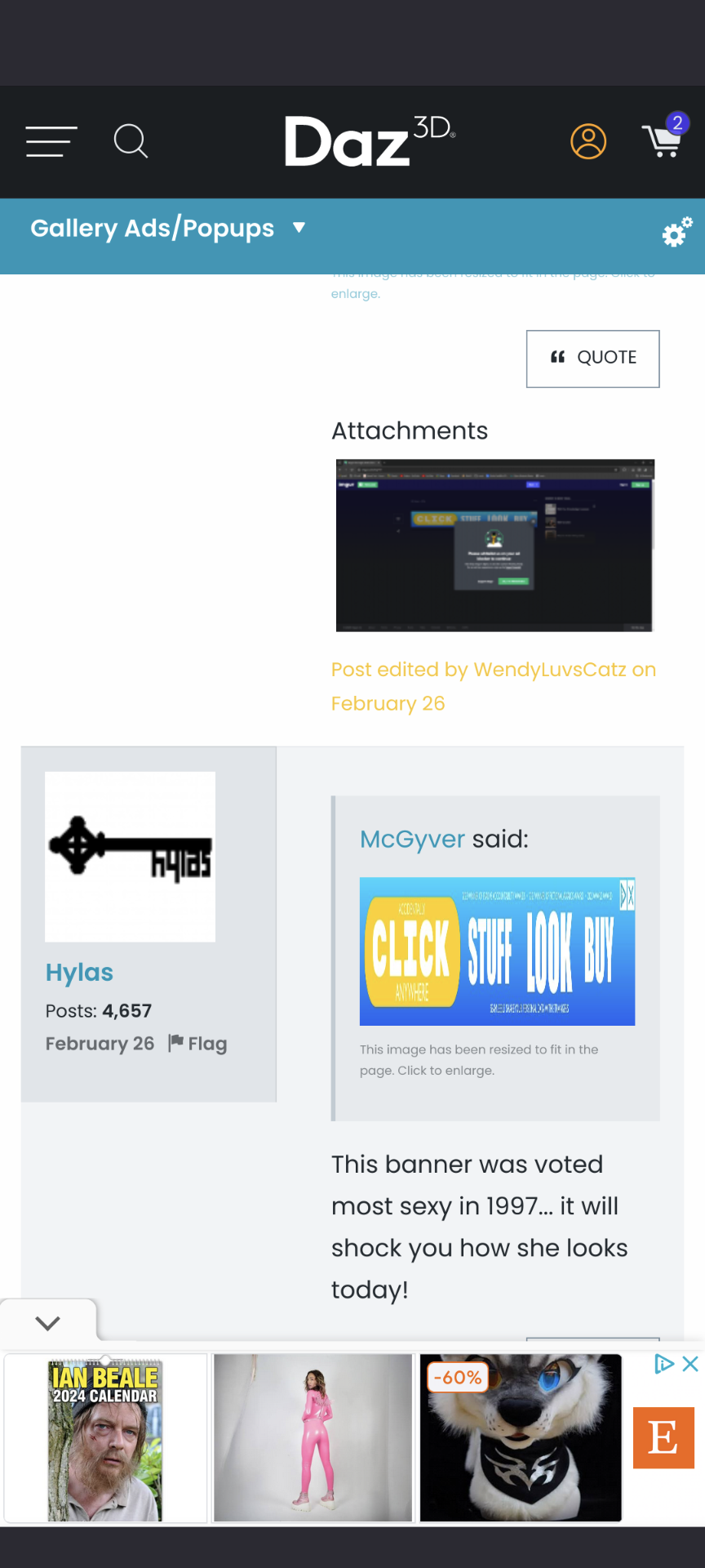 There are definitely devices where Daz's layout was bad before taking another chunk of the screen for ads. Mobile browsing should be a major consideration these days, but apparently no-one seems to have actually properly tested the community and these new ads on a phone. (Alternatively, if they have, they have somehow deemed this acceptable).