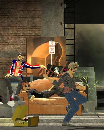 Playing around with some new'n'old PA-sale goodies: The Slim Man (with one of Pumpkin Head Pete's textures and eye from Sirano M5) and Yolande Hair. The birds are LoREZ Crows. The distant background & sky are the All New Worldbase XT Lushlands, the nearer background is Merlin's Crossing.