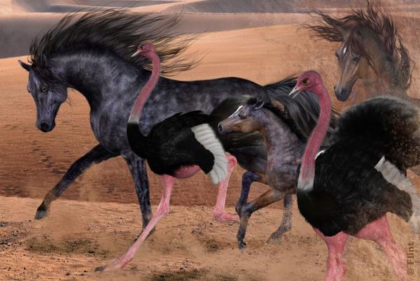 Here are a couple more of my renders using Ken's marvelous new Ostriches!