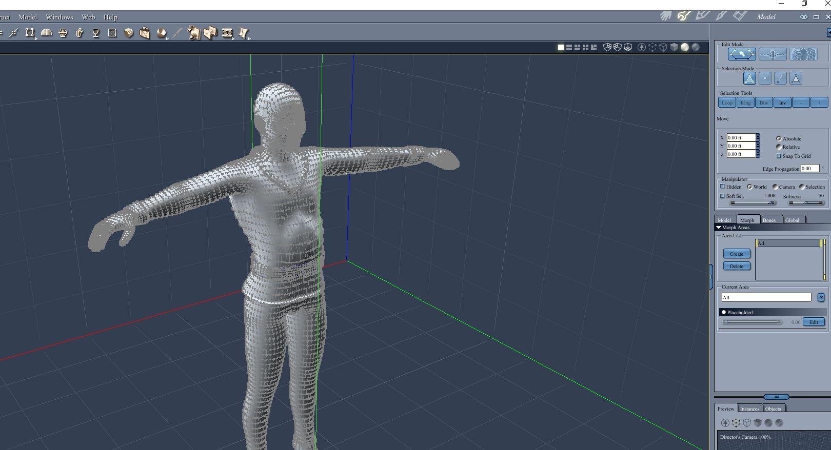 - For Carrara-style, plenty of functions, but a few limitations.  Remember to create a full-body morph for the object mesh before attaching the bone skeleton to the mesh.  That is needed to add new morph dials which is very helpful for editing in the posed position.  If you need to detach the skeleton to edit the mesh you may lose a lot of your bone weight adjustments when you re-attach.