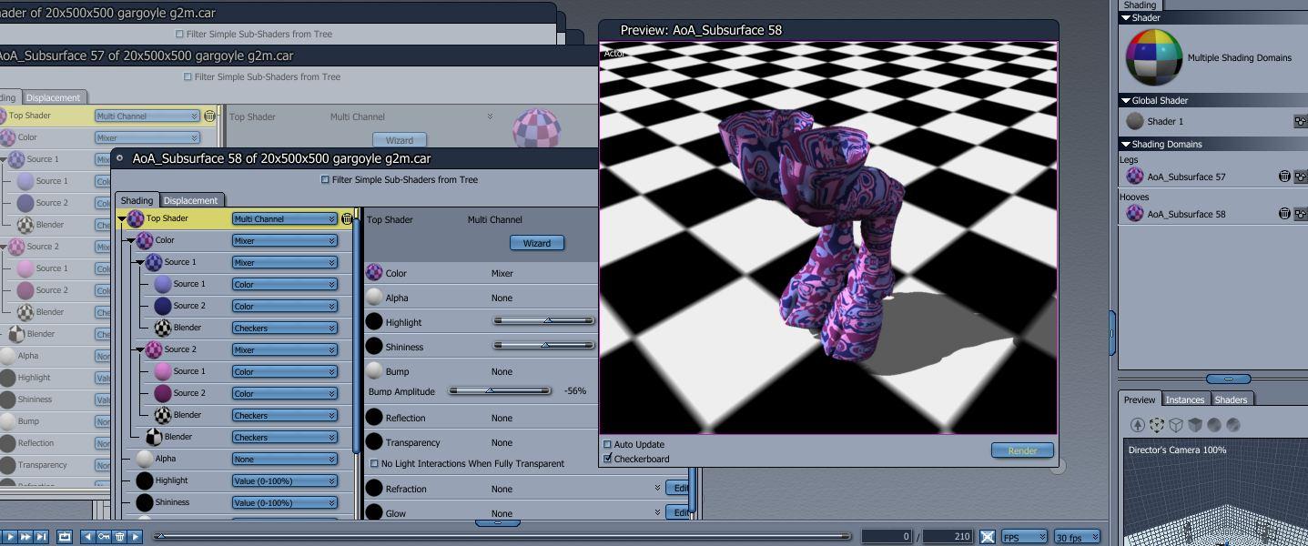g2m gargoyle working better than the minotaur.  gaps showing in the legs tesxture.  found a kewl shader dinosaur skin under misc.
