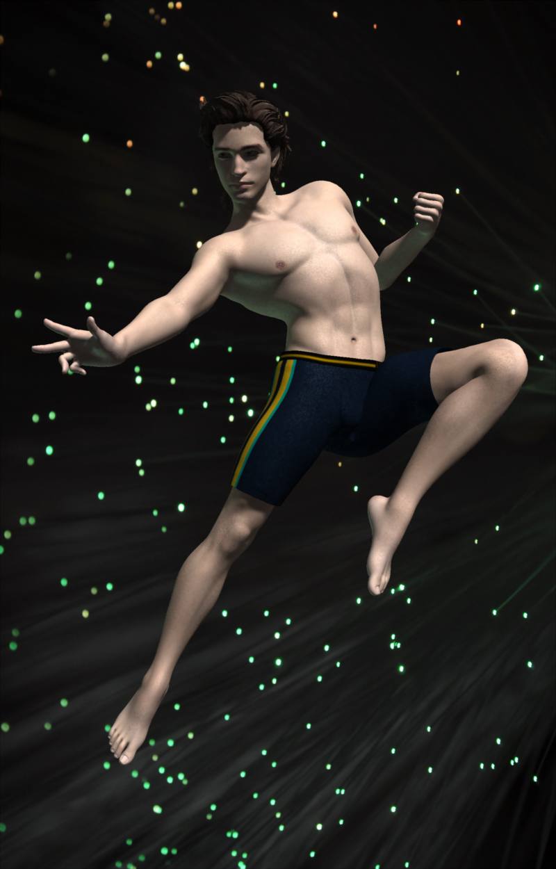 It's my original figure, modeled by me from scratch in Blender, then conformed to G3 male as a clothing, converted to blended weight maps. It works in Carrara and is compatible with converted pieces of clothing and hair from G3 library. Carrara render.