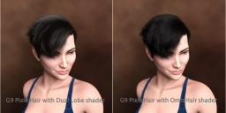 This is a test with the dforce Strand-Based Hair that comes with G9 (Pixie Hair) since everyone has it. I thought it might help to have a side by side comparison of old and new (with same lighting) for those that are curious on what the differences are... tbh, I'm not totally sure of what the differences are is since the hair mostly looks the same, but the lighting on the hair is very different and it seems thicker? This was without Revolution - Omni Shader Presets For Strand Based Hairs. There are a ton of different options in the presets that I know will probably make even more of a difference, so keep in mind that my side by side comparison is very limited.