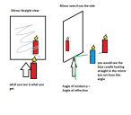 Ok lets put some words on reflections here, as it is indeed a tricky topic. Reflections be it mirrors or water or any other reflecting surface in DAZ follows the laws of physics as in the real world, so the thing we continuously will have problems with is the fact that the angle of incidence equals the angle of reflection. As described in my masterly presentation below that means when you look straight into the mirror or put your camera into that position, what you see is what you get reflected (youself, everything between you and the mirror). As soon ans you move your camera to a side the things you see reflected in the mirror more outwart to the other direction.