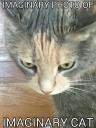 I sometimes feel bummed out because I don't have a cute cat that lets met dress them up or pose them with toast or melon rinds on their head... I had a cat a long time ago and she was real cool... She taught me a lot of stuff about cats (secret stuff that cats who let you dress them up in fruit peel body armor don't know about)... She was actually one of those rare cats that would come to your defense if she thought you were in trouble (she attacked my friend when we were practicing stage fighting), but God help me if I tried to put sunglasses on her that she did not pick out herself (my cat)... I'm pretty sure she would have disemboweled me in my sleep if I'd have attempted such an indignity.  But that's a whole other lifetime ago... Now I don't have a cat... Technically,  nobody "has a cat"... Cats allow you the privilege of cohabitation... Well, real cats... Toast head cats don't care what the arrangements are, as long as there is a spot of tuna involved, you can dress them up in a silk négligée for all they care... But now I'm catless and the best I can do is hang out with a really scraggly looking possum-cat.