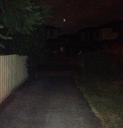 I managed to find the photo. That's the driveway and you can see the spider lit up by the flash in the air in the middle. Note the complete lack of supports to the side (it was attached to the tree on the left and the house way on the right.)
