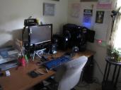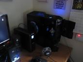 Everything  is powered by a 1100 watt EVGA Power supply, and a APC  6 hour UPS for power back-up for uninterrupted power during a brown out or power failures during rendering  . viewing on a 24 inch Samsung Scarlett LCD monitor  I got another monitor coming for Christmas so I'll have 2 soon. , this is what my system looks like on my messy desk..lol