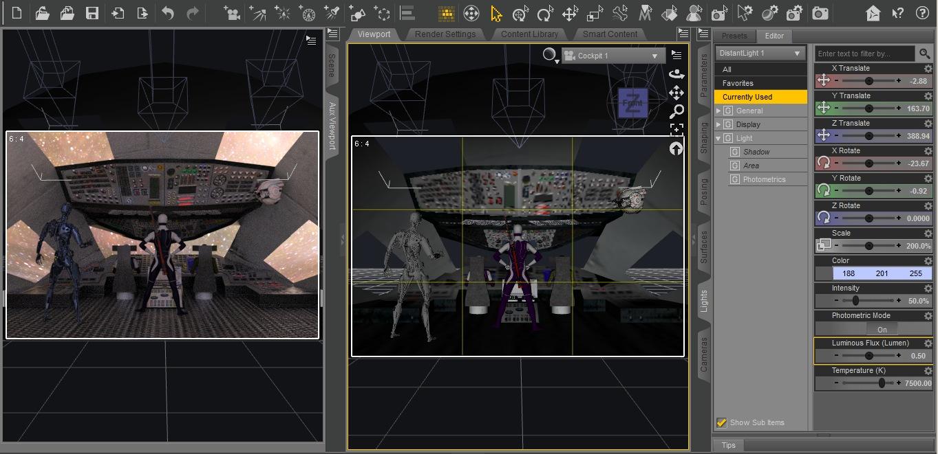 Now I add a distant light with default settings. And now my problem : my figure is completely white, like burned by over exposure.