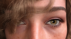 It's seemingly random, doesn't seem restricted to any particular character/eyes/morphs, but probably dependent on ordering of actions/morphs applied - here's another example from just now trying to replicate the issue. Started with Sophia 9, dialed her to 60%, applied a different eye mat, and duplicated the character (edit->duplicate->duplicate node heirarchies). Then on one of them, tried dialling random characters into another 60% (and back out to 0% when issue didn't occur). Was able to get it to happen with Xiu Lin 9, and then was able to dial Sophia out to 0% and the issue persisted - so the screenshot has only Xiu Lin body at 60%, head at 100%. No other morphs. Dialled the same morphs on the second character in the scene, no issue. Confirmed in the currently used section they both have exactly the same morphs applied.