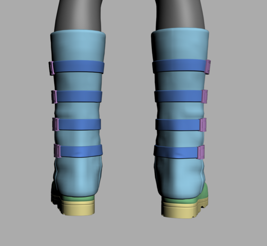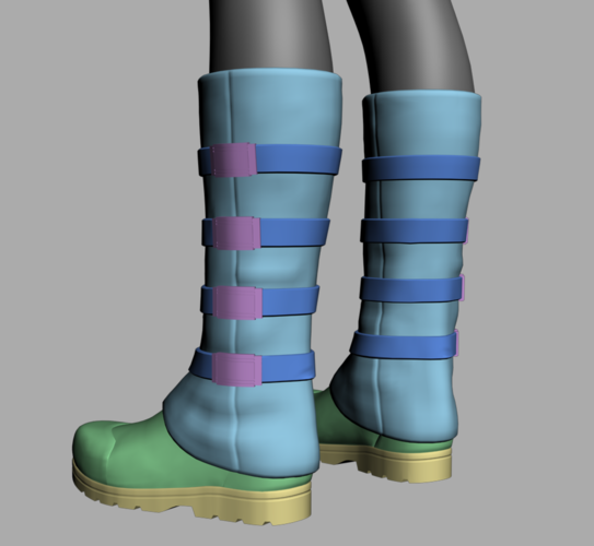 Boots are now to be exported to Daz Studio. The modeling process is deemed complete. Clips have been added. UV mapping is complete (I tried to UVW Unwrap, but I couldn't get my head around it, so I settled with basic UV Mapping instead, The clips however are UV Unwrapped... This means the boots use tiled textures.)