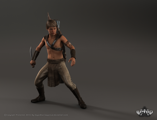 I got Inspired from my render battle with Jaderail, and was compelled to create (and recreate in this case) some of my tribal characters. I've revised 'Kyde' heaps of times since my last posted render of him way back. Kyde (Spyro's brother, an original character) belongs to my novel, although this isn't a canon depiction of him, It was fun recreating his fantasy tribal alternative. He's came a long way since my last render of him.