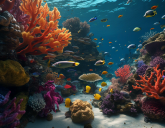 A colorful coral reef alive with vibrant marine life and swirling currents