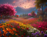 dazai_A colorful flower field with a riot of colors and buzzing insects 6.png