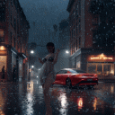 took me like few minutes to animate this gif using a Ai generated background composted in daz studio then added a g8 character, and therain tool with splats.  then took like 15 minutes from start to finsh to render out and make  into a gif