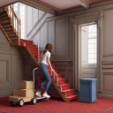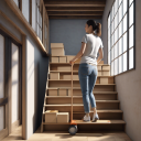 Series 1 I tried to get the girl pulling a full hand truck up the stairs but got these. The picture I Frankensteined together in GIMP from old photos and the file boxes in the last one is on this blog post https://www.tumblr.com/danniswrites/775584343217373184/deadly-job-136-file-boxes-by-myself?source=share ; I do love the stair pictures I got! And Victoria is awesome, if only the AI knew what a hand truck looks like. It's hard to find pictures on the Web, too, because they come in many different kinds. Sorry to send you to my blog but I can't find the final photo.