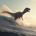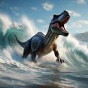 Yes, that's him, the T. rex! He seems to be enjoying his surfing trip. And he has the correct little front legs. Impressive - how did you manage that?