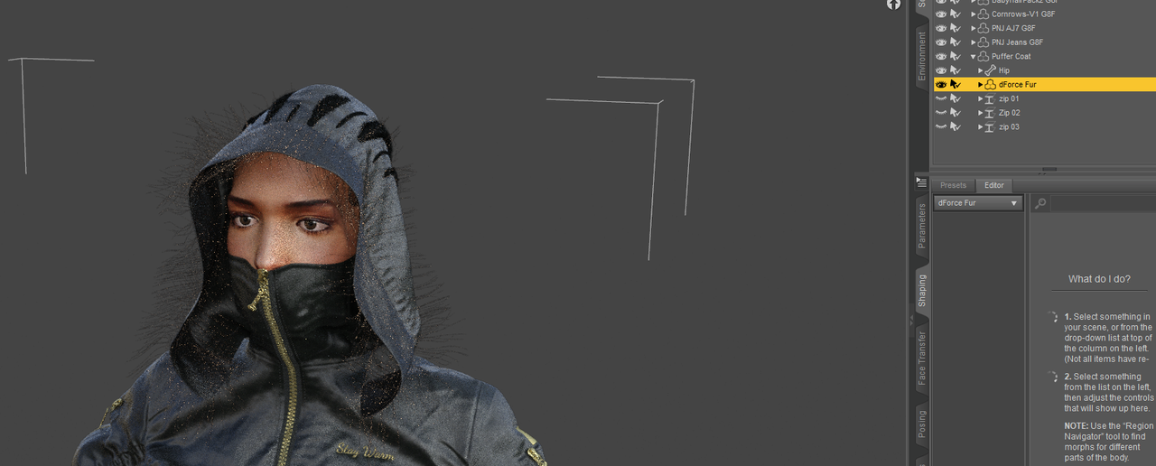 So i've just bought this https://www.daz3d.com/puffer-coat-with-dforce-fur-trim-for-genesis-8-and-81-females