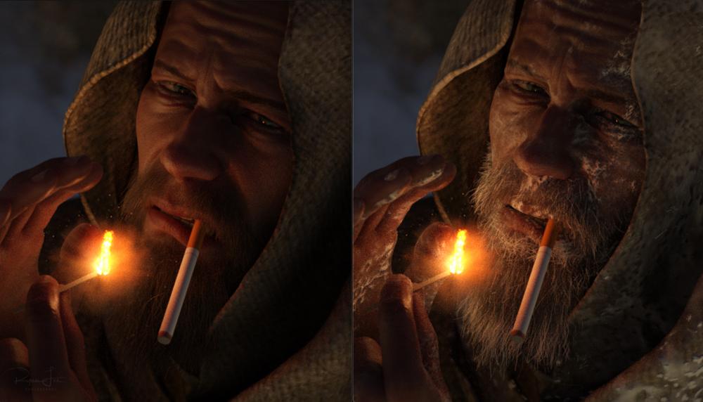 Let It Snow is truly a very versatile and amazing product and to show its capabilities as well as my adoration of your post-sales support, here are before-and-after renders (with no post-work and the only difference being the LIS geolayers on the face, hands, beard and scarf) so that potential customers can see for themselves an example of what this product can do for their projects. This thread will hopefully also help them learn the ropes expeditiously. Thank you once again! Let It Snow! <3