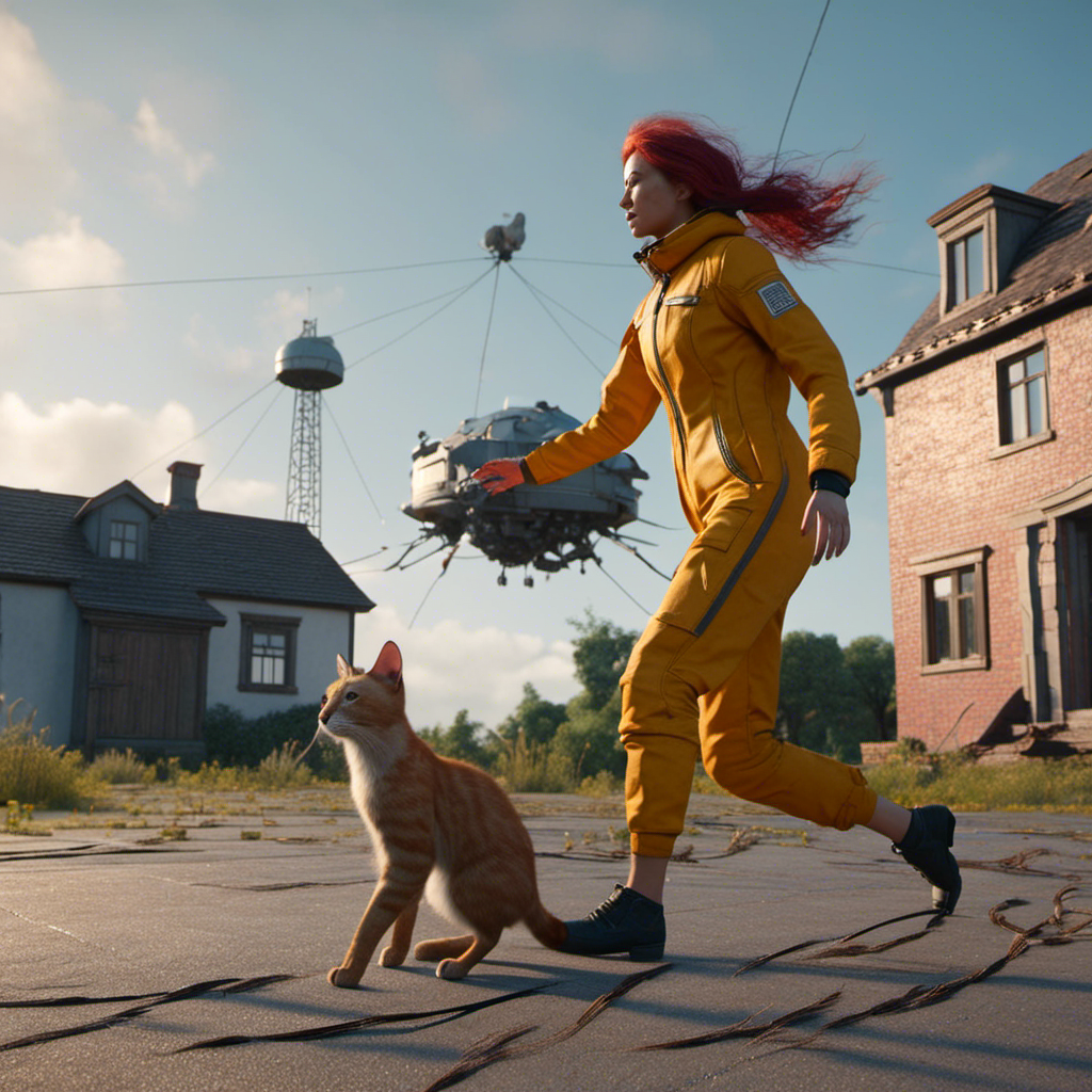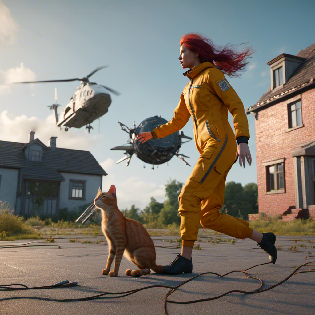 Prompt: Woman piloting a spacecraft crash lands and is savaged by a house cat.