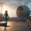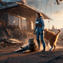 Still persisting with "Woman piloting a spacecraft crash lands and is savaged by a house cat.", and the AI still seems to have difficulties with cats, feet and cat tails.