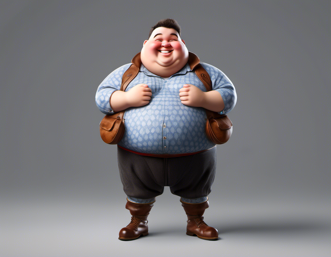 Digital painting of a plump, fat individual with round cheeks and a jovial expression