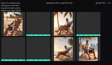 The prompt asks for a topless man on the beach: