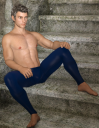 This is Theo. He is wearing the lower half of the No Suit for Genesis 3...minus the feet coverings. He has a slight dusting of the Unshaven for G2M. I did the pose my self and added some morphs to the body. He is sitting in the courtyard.