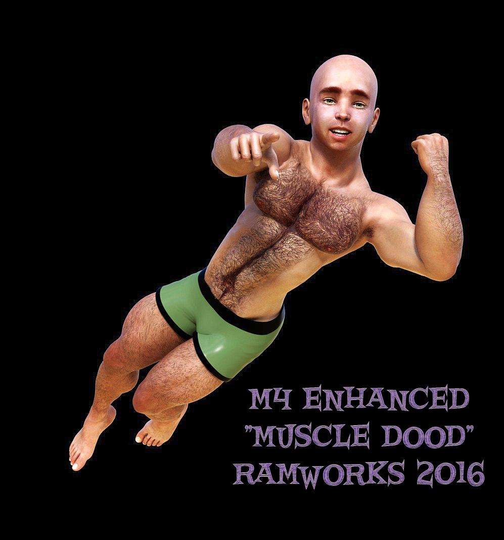 This is an old file I named "Muscle Dood" using M4 Enhanced..... fully converted to iRay as well as the shorts being Sub'D'd and a Smoothing Mod added to get them fitted better. Stock pose with some tweaks.