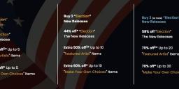 I think the problem is that two of them (Alienator and biomes) are also included in the Landscape new releases section, so they're both trigger items and Landscape new releases, so according to the advertising wording (buy the trigger item to get the discount on new releases from today's selection), they should be discounting themselves. Or they shouldn't be included in the Landscape new releases. Or the wording should be "Get an extra 30% off* OTHER “Landscape” New Releases and Featured Artist Stores‡