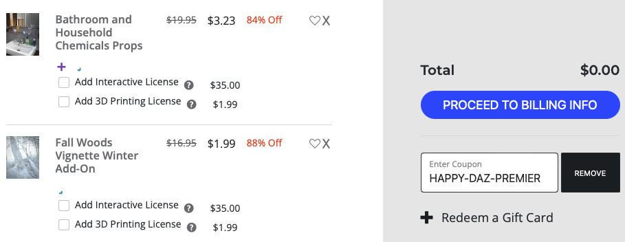 With the code active, the non Daz+ item is discounted further while the Daz+ item didn't: