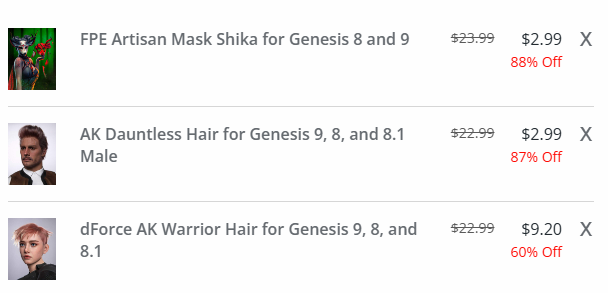 Chrryt's store not showing the extra 20% off though: https://www.daz3d.com/chrryt#filtered=1