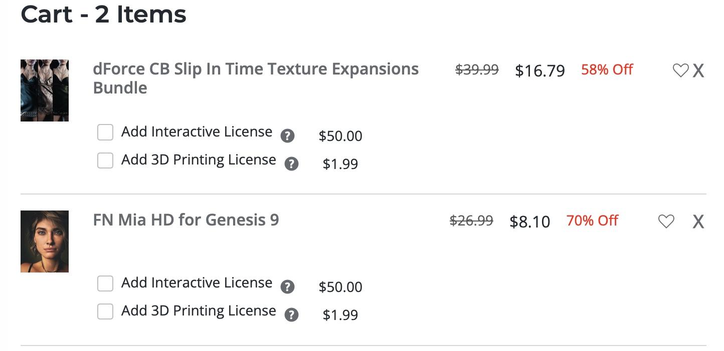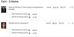 • In todays sale it says "Buy any Debut New Release to get 60% off*‡  Featured Artist Stores". If I click on the button (https://www.daz3d.com/christmas-eve-artists#index=60&order=popular^1&filtered=1) and put items from there in the cart, they actually do not get any extra discount even though I have a Debut New Release item in the cart. I currently have one x-mas punch card which gives me 10% discount, which is applied in the cart as it should. For example, I select an item from the featured artist store with no prior discount and it will show 10% discount in the cart (not 66%). If I select an item from the featured artist store with 50% prior discount, it will show 55% discount in the cart (so, again, only the 10% punch card discount is applied). I tried many items and they all did not get the 60% discount.
