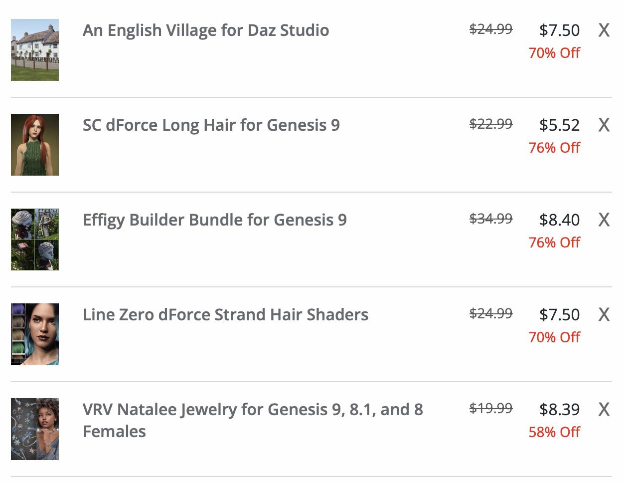 I put in An English Village and it didn't get the 20%. Elor, would you put in https://www.daz3d.com/fn-mia-hd-for-genesis-9 which is what I had that got 20% and tell me if you get the 20%?