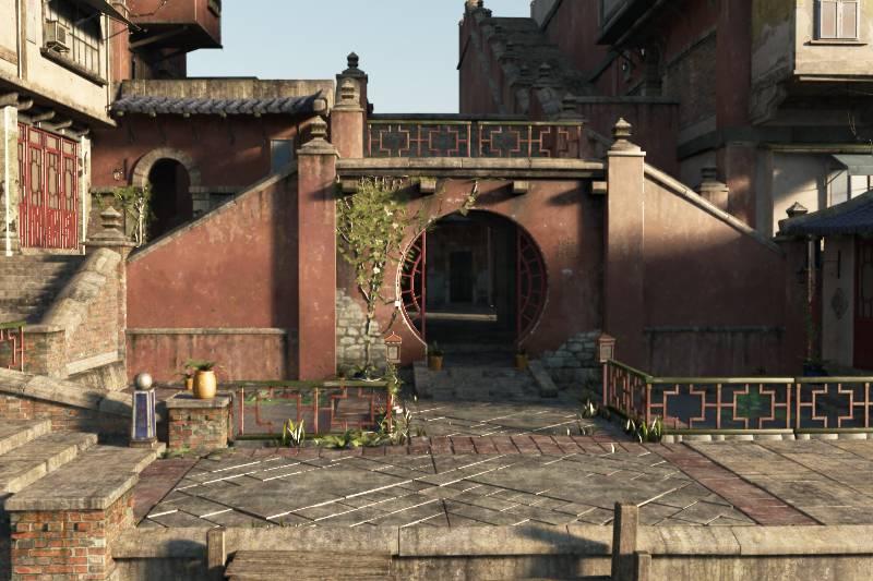 A few of Stonemason's older sets include a Vue component - you can find the ones you own in DIM by searching for "vue" since it's in the name of those installs (make sure your filters in the Advanced settings include Vue, though, or they might be hidden.) Of the Stonemason sets I own from back then, there are vue files for Tin Pan Alley, City Courtyard, Greeble City Blocks, Skydeck, and The Streets of Asia. So if you own any of those, you can install the Vue files into your Vue library and they'll load up ready to render. This is a straight-out-of-the box render of The Streets of Asia with the default sun position.  I imagine I can get more realism by adding some maps to additional - this was meant for Vue 4, I think, or maybe even Vue 3 - so it's just diffuse & bump maps with a global highlight setting.