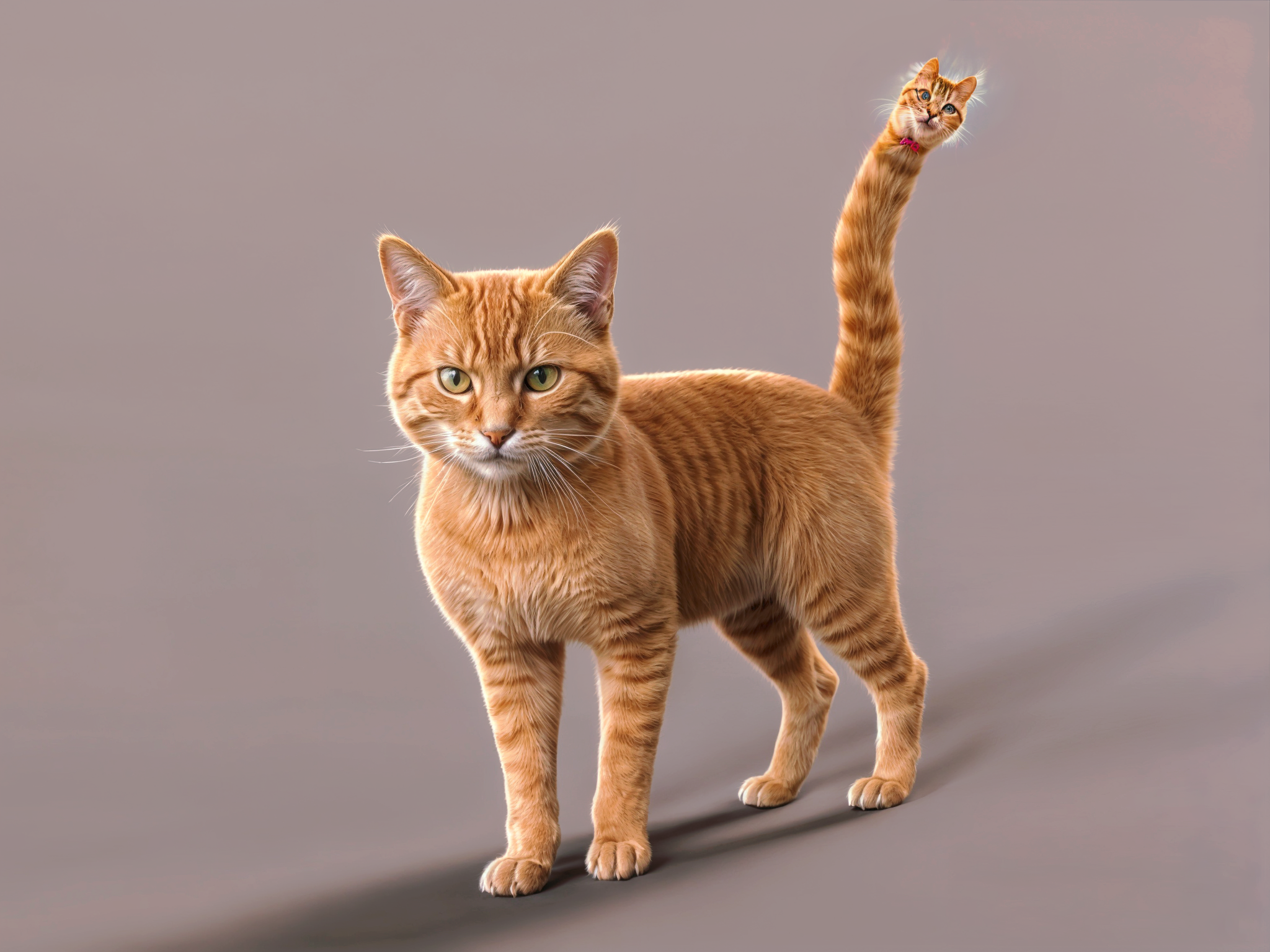 So I did an edit of the enhancement and prompted it to not put a face on the end of the cat's tail. So, instead, it put a very detailed cat face and bow tie on the end of the tail!