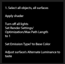 The instructions say "Select all objects - Apply shader - Turn off all lights - Set render max path length to 1 - Set Emission Type? to Base Color - Adjust surface's Alternate Luminance to taste". These are the only instructions it came with.