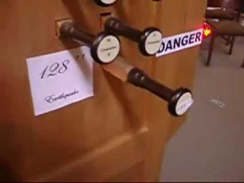 One of the three instruments with a full 64' stop in the pedal division is the Atlantic City Auditorium Organ here in The States (which is currently undergoing restoration). It is a 64' Diaphone, with a 19'' long 90° mitred section to fit under the auditorium's ceiling. The other two are at the Sydney Town Hall (64' full length Contra Trombone) and at the Church of St. Moritz Olomouc Czech Republic (a 64' Untersatsz which has a "stopper" in the top of the pipe and is only 32' in actual length though it produces a true 8 Hz tone [more acoustics involved here, as putting a stopper or cap on the top of a pipe lowers it's pitch by an octave)