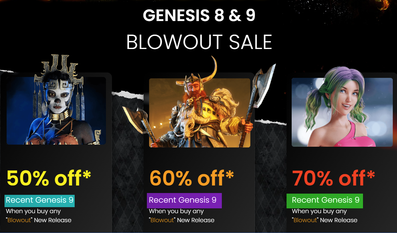 It looks like Daz changed the banner & the Blowout Sale page. Banner now says, "No additional purchases necessary." The 50%/60%/70% Off promos at the top of the sales page all have wording changed to, "Save an additional 10% off with any 'Blowout' New Release."