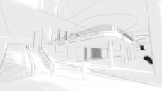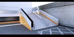 The floor lights have already been installed and only need to be textured. The building’s color scheme has also been enhanced with a bold touch of orange.