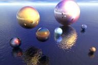 I did this scene a few days ago, the islands from the DTE Terrain, lighting from a Hdri from Landscapes under Fantastic Skies; inspired by Horo's splashes I added bubbles to the scene; calling it Shiny Spheres 2