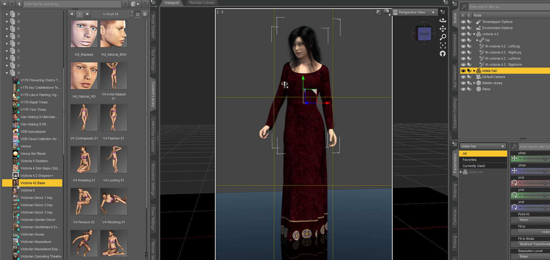 I saw Vicky 4 comeup very cheap and for the fun of it bought her https://www.daz3d.com/victoria-4-2-complete starter bundle, when i first started daz i accidently bought the maiden fair dress thining it would just work with genesis LOL anyway so thought maybe now i will use it.