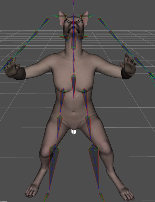 I have to say, what you did with the leg morphs is GENIUS, avoiding the way digitigrade legs can look messy in certain poses. Even though the feet look cartoonish, once you pose them they behave beautifully.