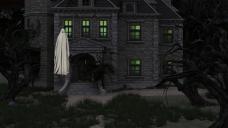 For the first image, it may perhaps be best to put the "sheet ghost" in a pose that signifies movement a bit more? I know that a "floor" is not really relevant to a ghost but I think when a ghost is floating in the air you would still usually see slightly raised arms or something rather than being in a more static standing pose.