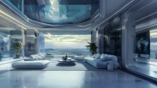 Luxury interior design, Spacestation, corridor, huge, indoors, photorealistic green plants, cinematic, warm colors, teal theme, equipment, scenery, sunshine,