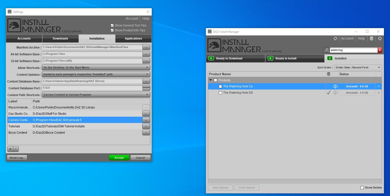 1) My DIM is set to install Carrara content to my C drive where the Carrara program resides