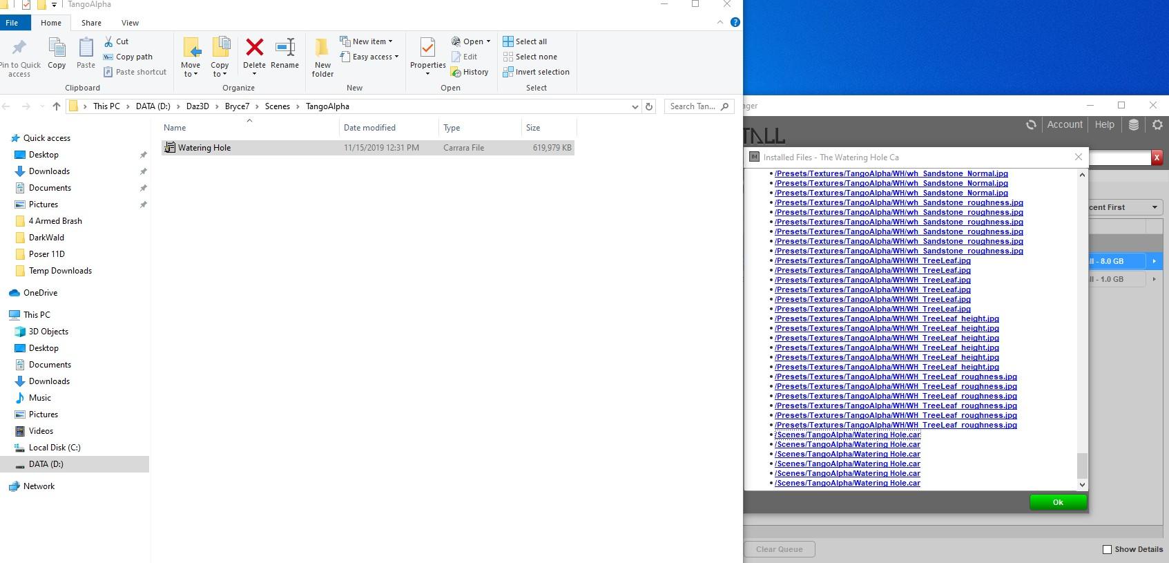 3) DIM placed the watering hole scene, props etc in the Bryce location on my D drive.