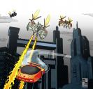 I really like this. I'm not sure what it is that you don't like about the colors of the attacking ships, but they seem to work as far as I can tell. The only thing I would ask is why the texture dots are so big on the buildings. Have you tried smaller ones? It just seems like the vehicle in front being attacked should be the focus, but the larger dots on the buildings keep distracting my eyes and drawing me there. I like the texture pattern on the front vehicle. Just curious if that was intentional or if I'm actually suppose to be more drawn to the buildings. Since I'm not sure of your process and I don't do comics much so you are definitely the expert there, I don't know if it is even feasible to change that without changing the other stuff because all of the other stuff looks dynamite.